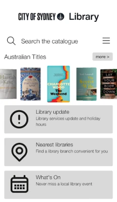 Access the City of Sydney Library app from your device anytime, anywhere. Browse and search our collections including ebooks and eaudiobooks, and manage your loans and reservations.