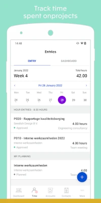 * Track projects and easily register your time spent on projects