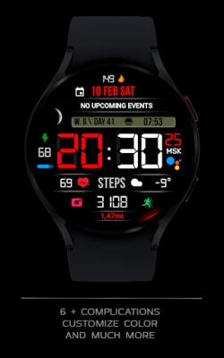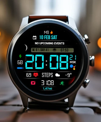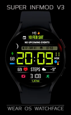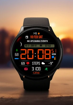 Stylish, modern sports digital watchface for Wear OS with many settings and a large number of useful functions