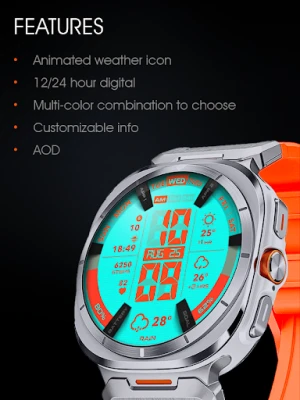 Classic EL Light display digital watch with animated weather and hourly forecast. Customize the color style and make it your unique style.